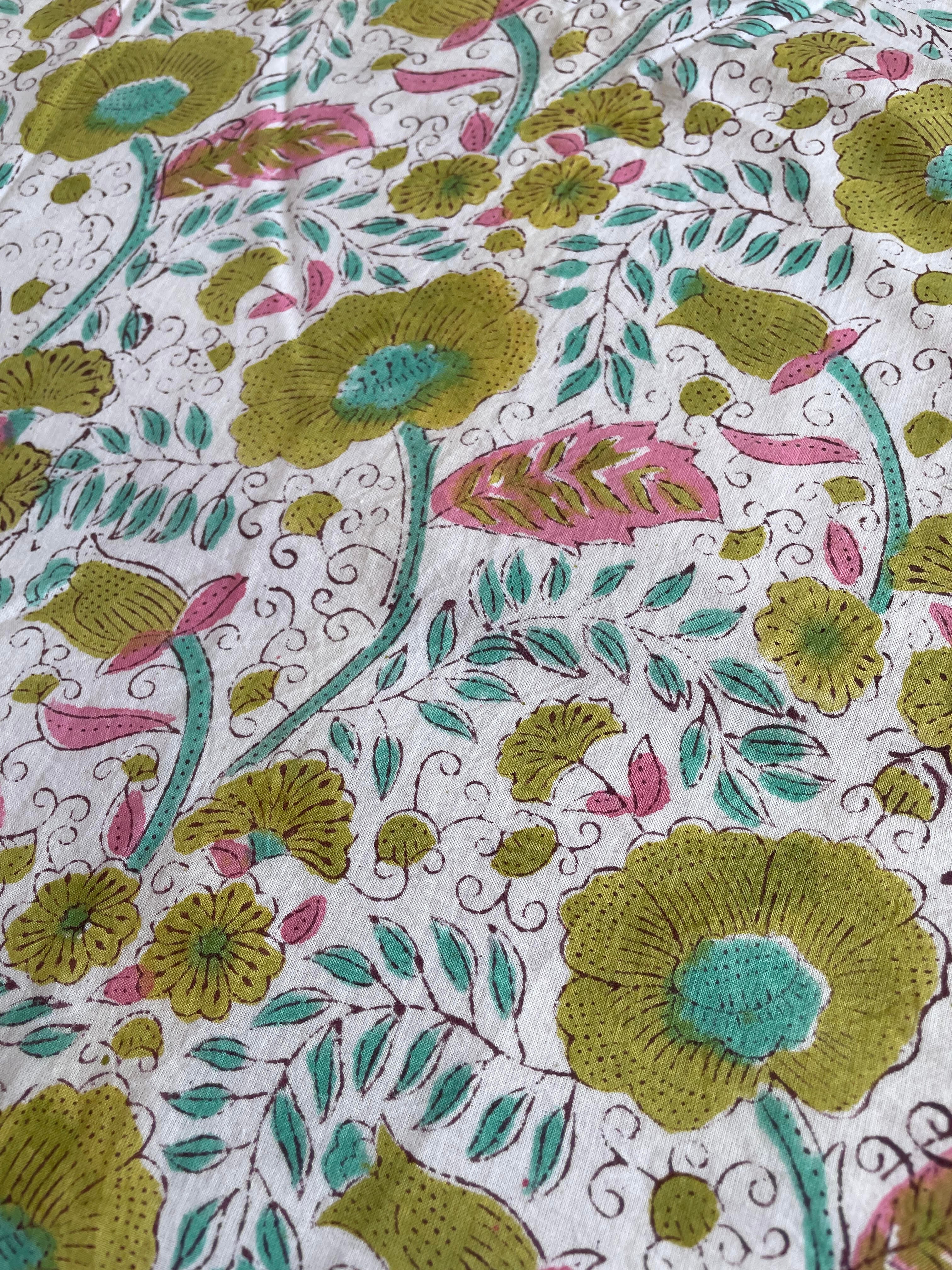 木製の型を手で押して色を重ねていくインドの伝統的な