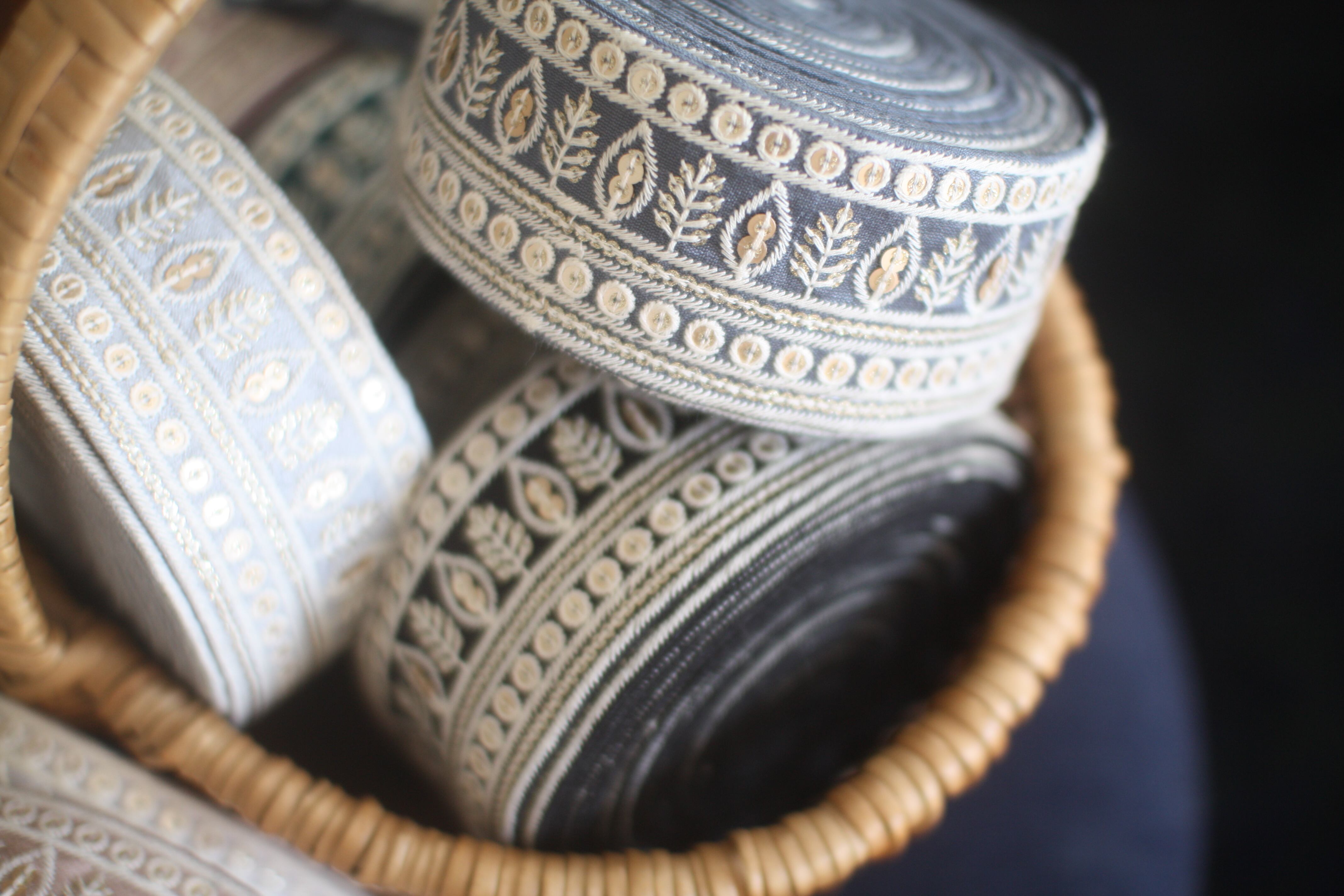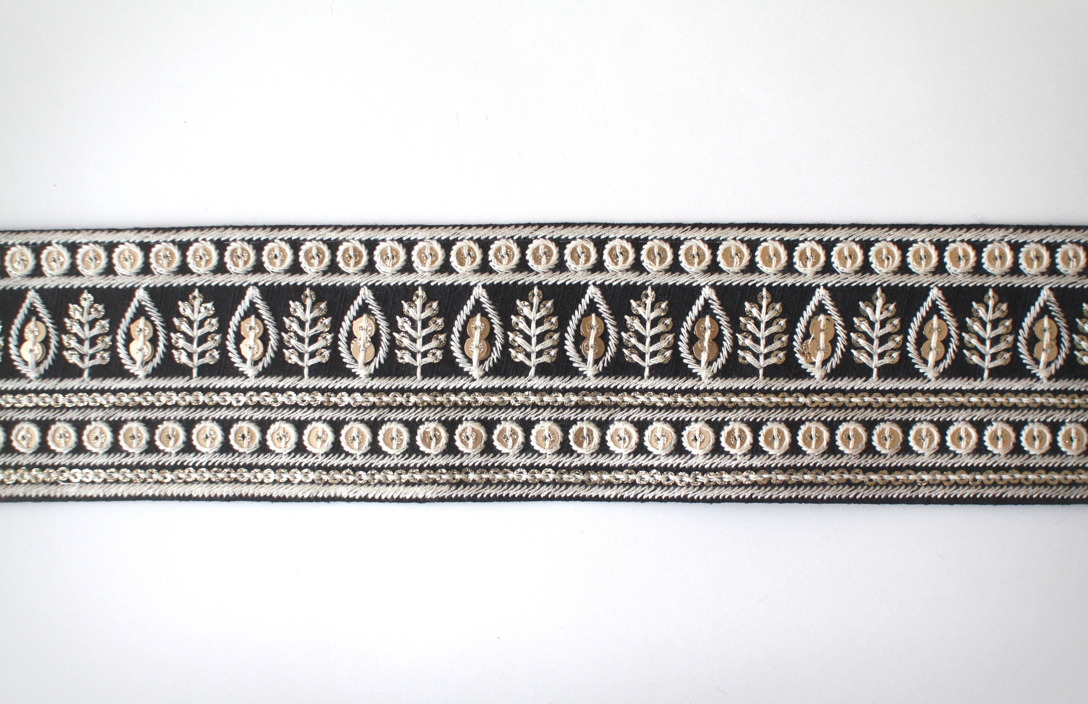 ◆1mカット済◆インド花柄刺繍リボン・ブラック