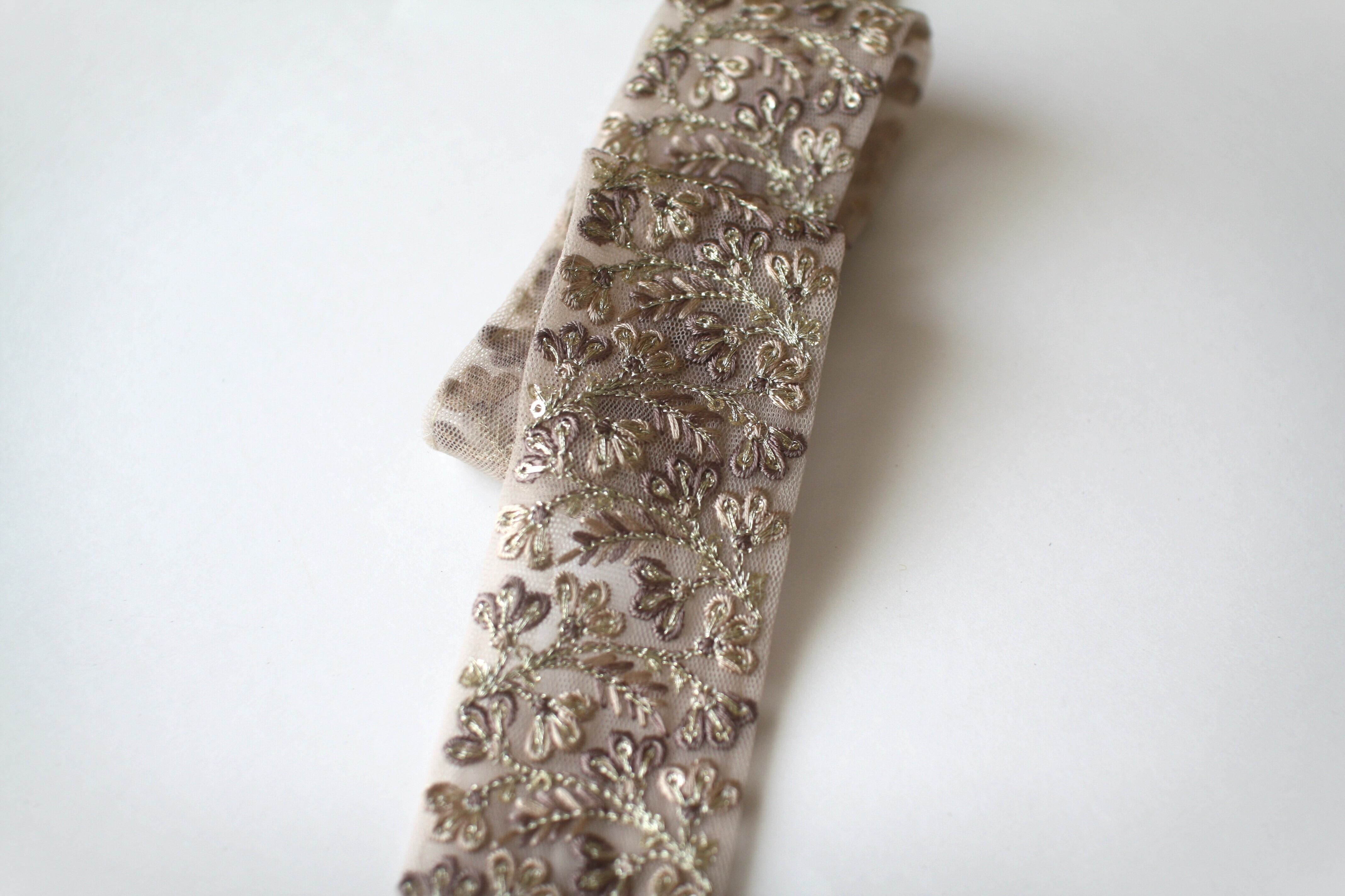 ◆1mカット済◆チュール花柄刺繍リボン・ブラウン