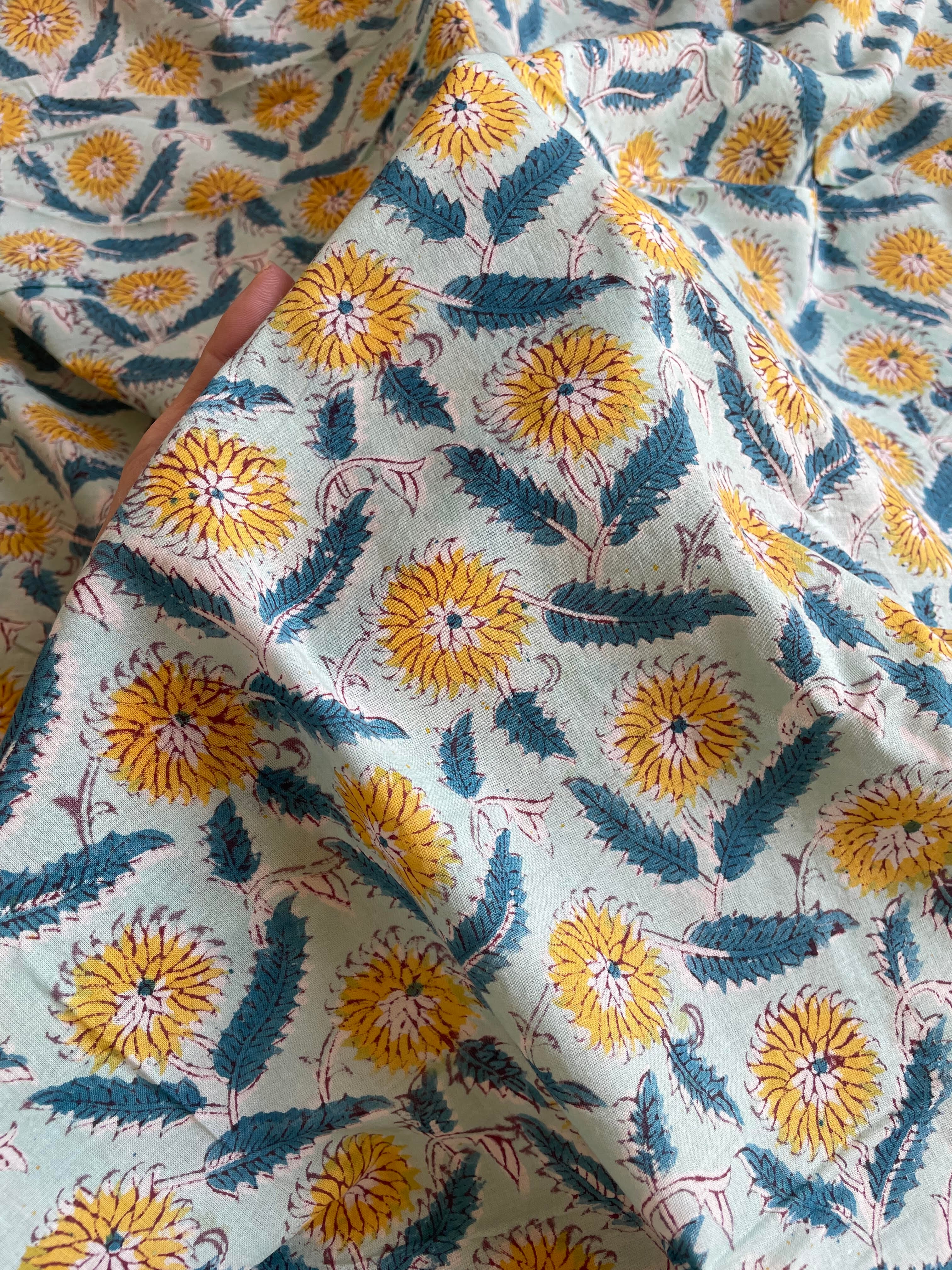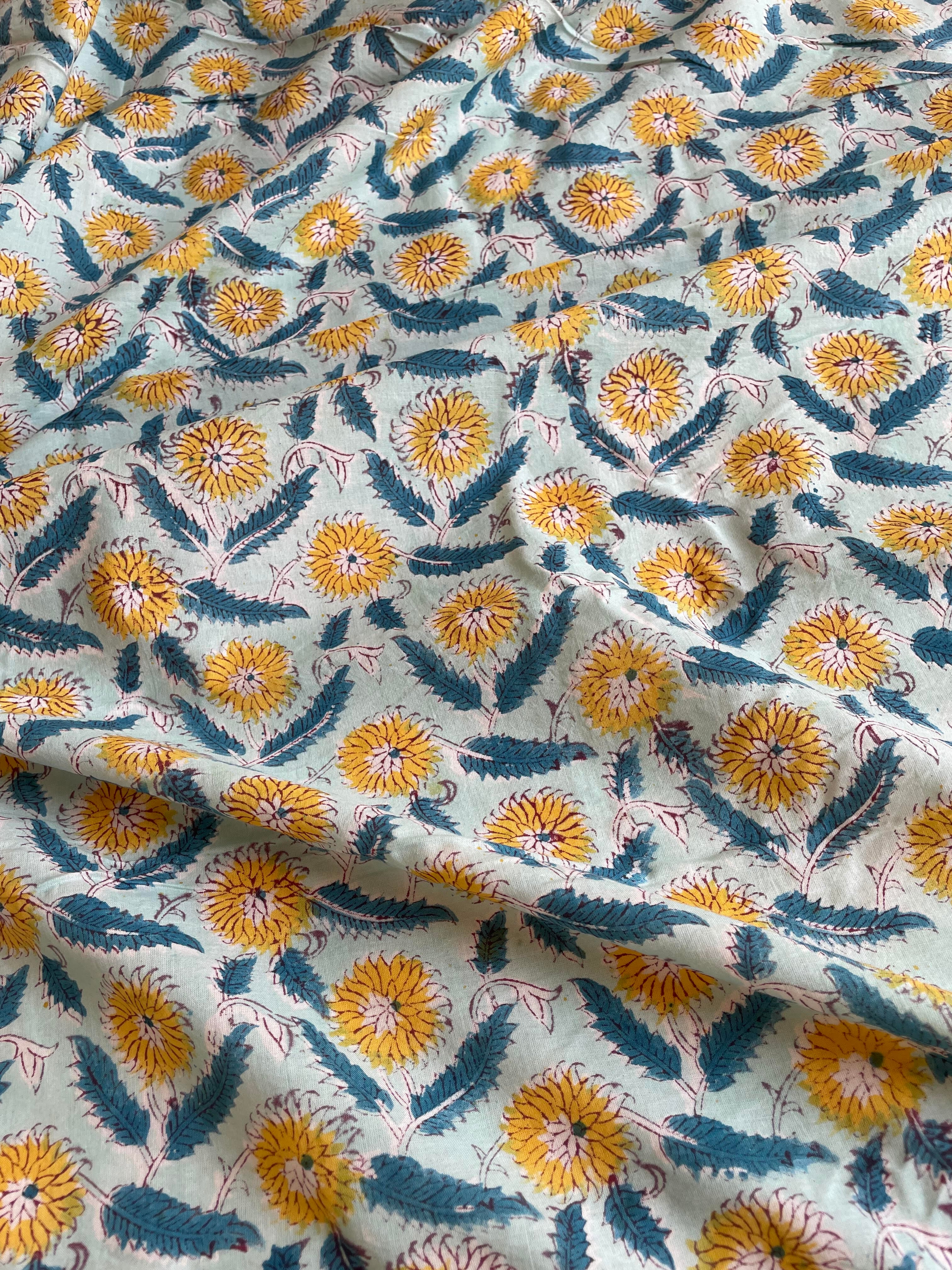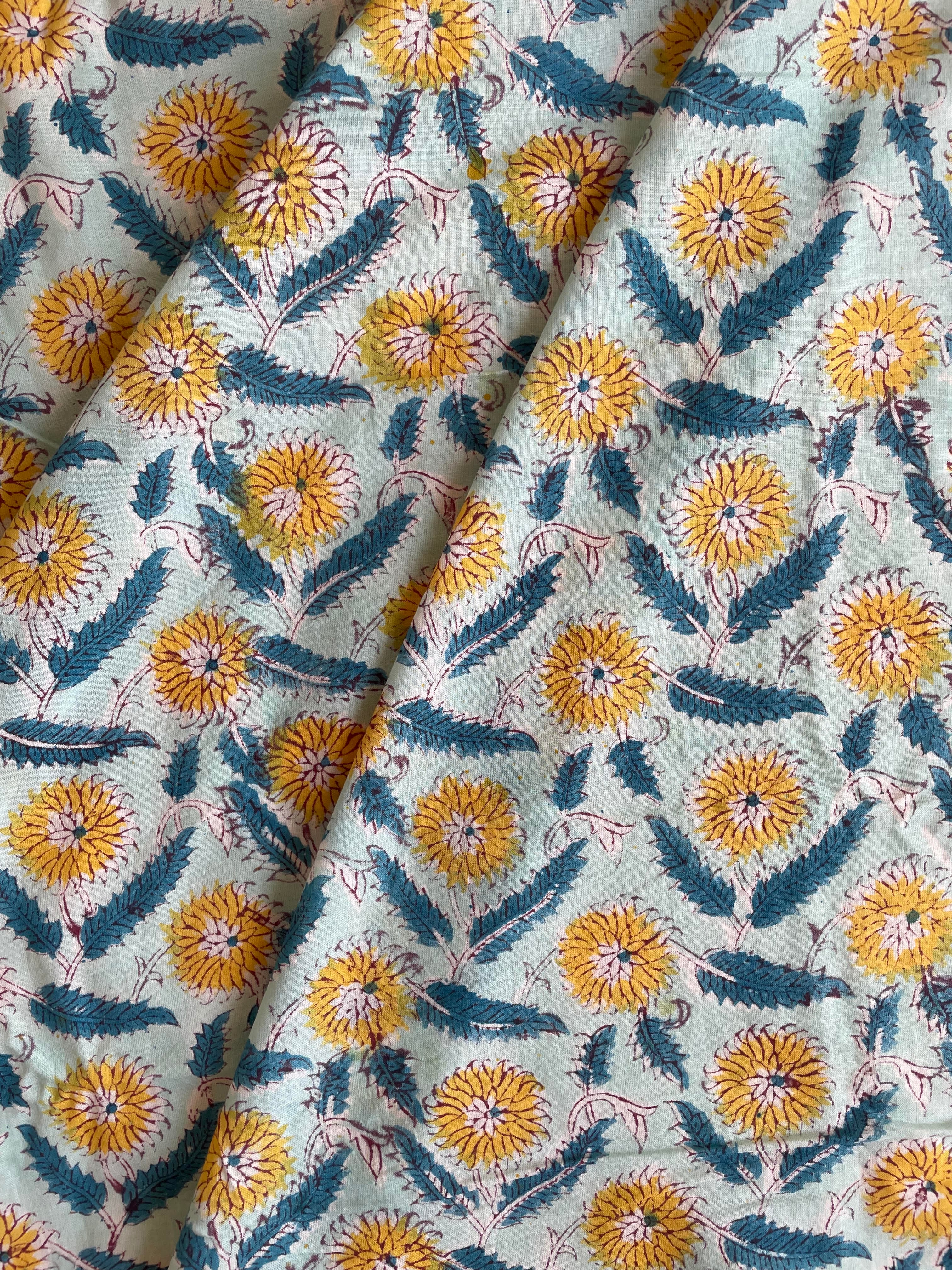 木製の型を手で押して色を重ねていくインドの伝統的な