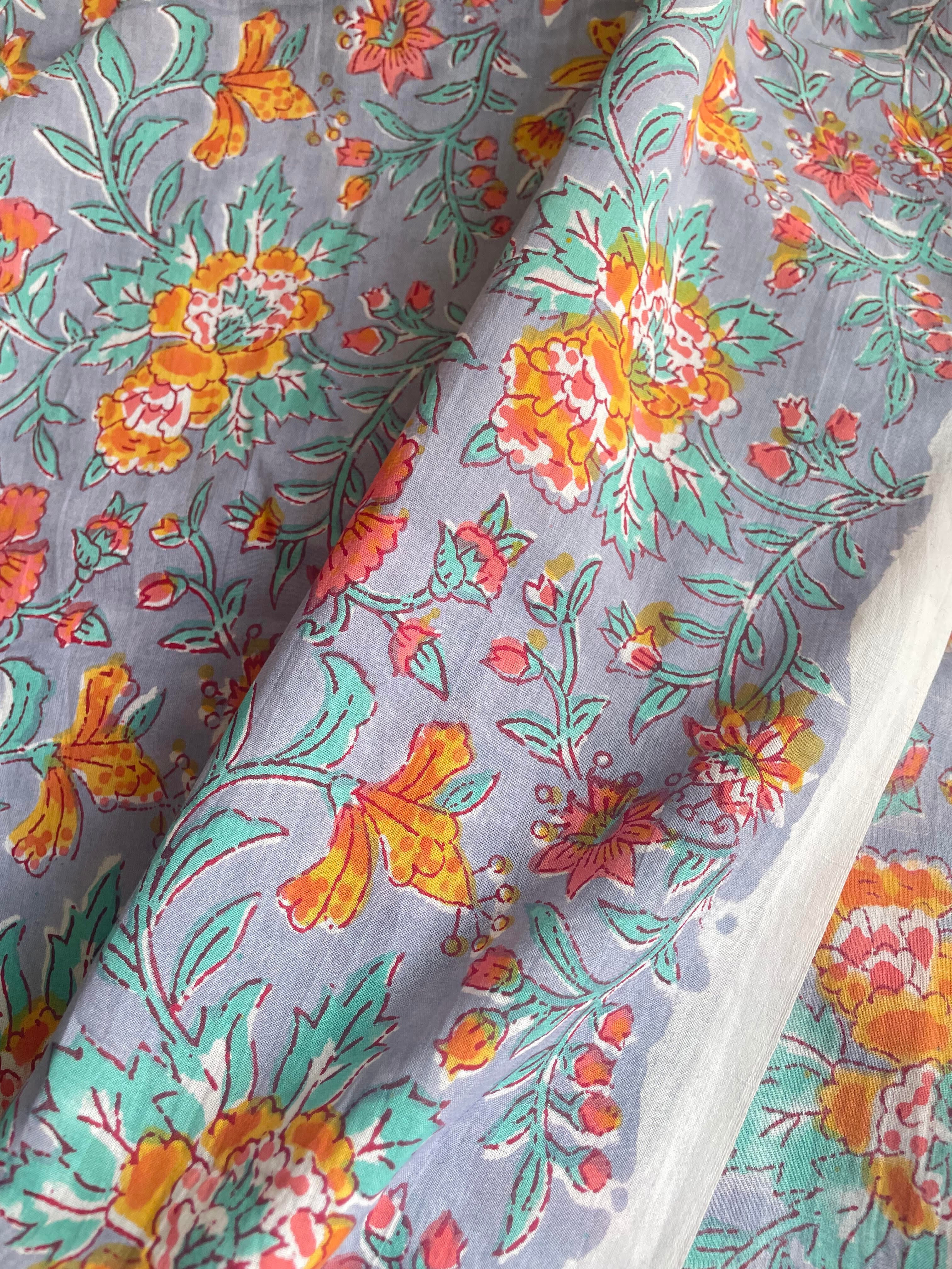 木製の型を手で押して色を重ねていくインドの伝統的な