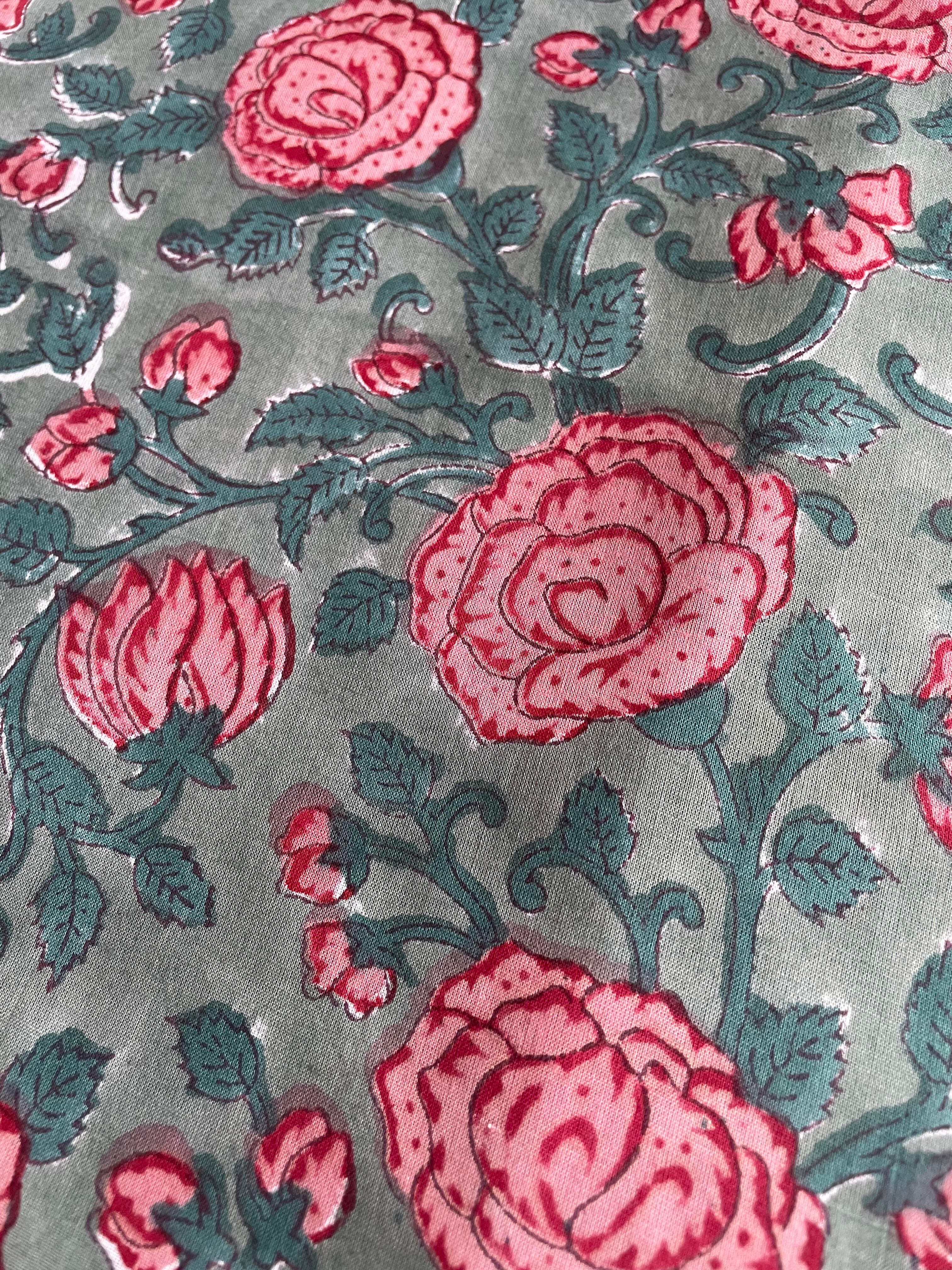 木製の型を手で押して色を重ねていくインドの伝統的な