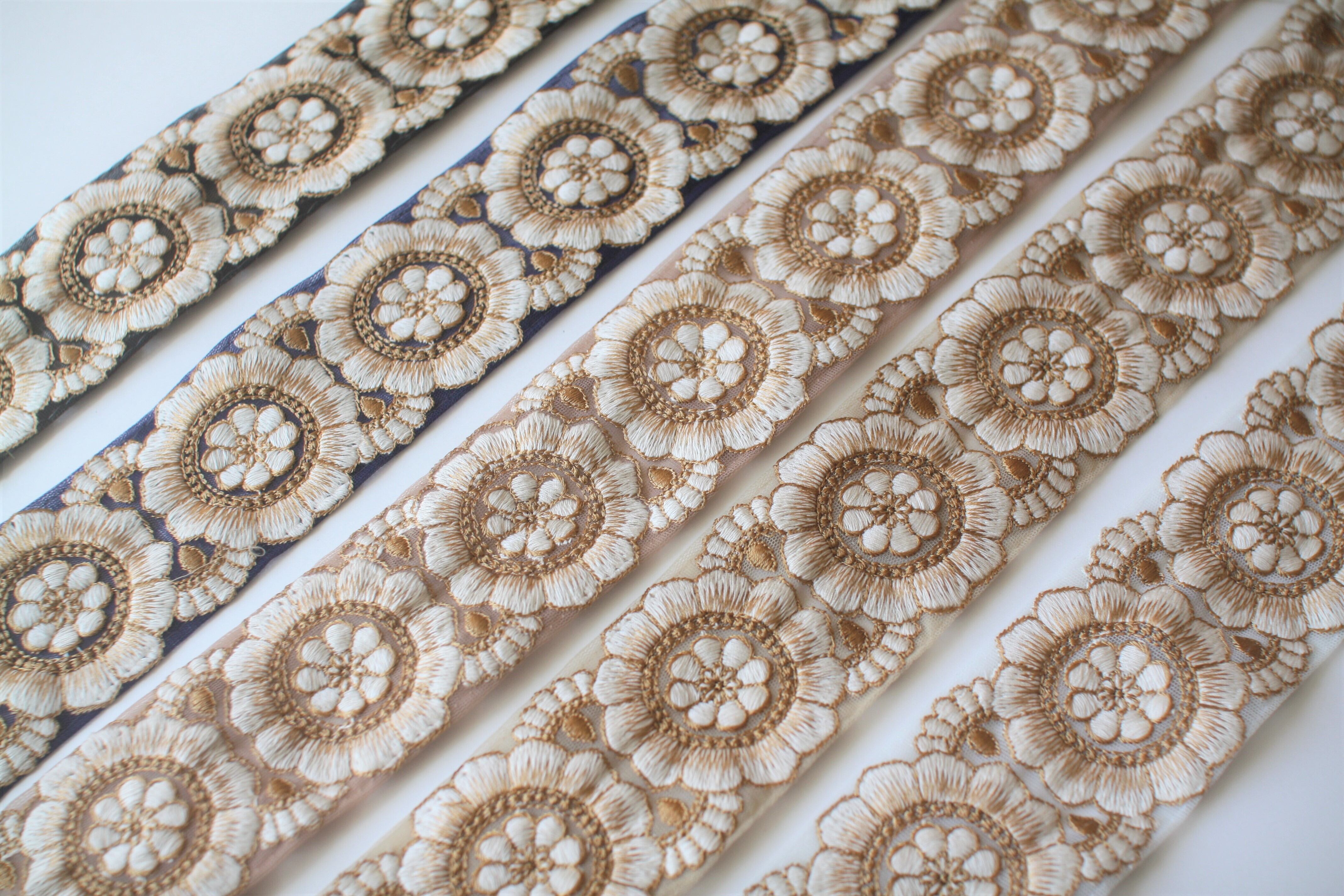 ◆1mカット済◆チュール花柄刺繍リボン・ホワイト